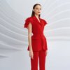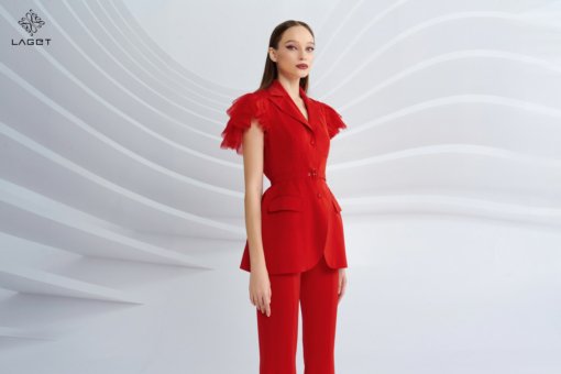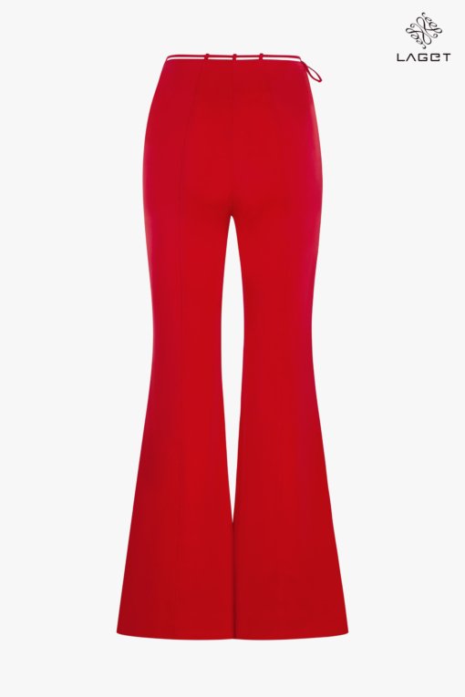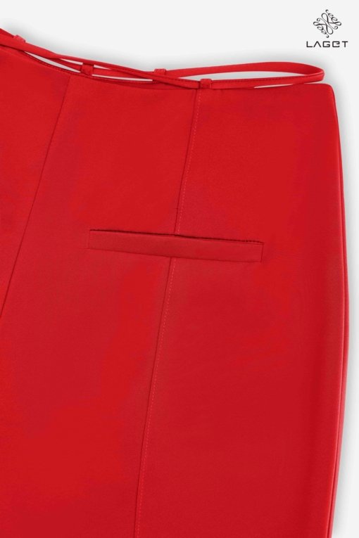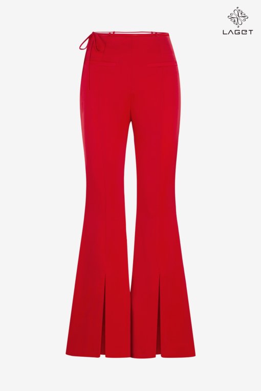 Quần cạp cao ống vẩy, xẻ đằng trước. Quần dáng ôm vừa phải, giúp khoe được vòng 3 và tạo hiệu ứng chân dài hơn.