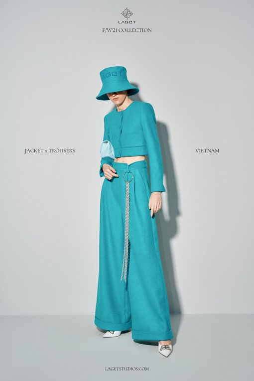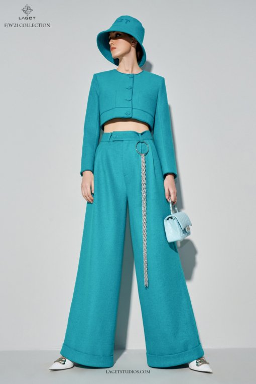 Set gồm áo Jacket lửng và quần ống rộng cạp cao