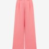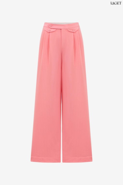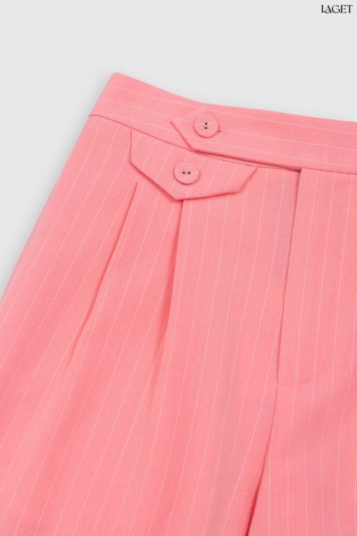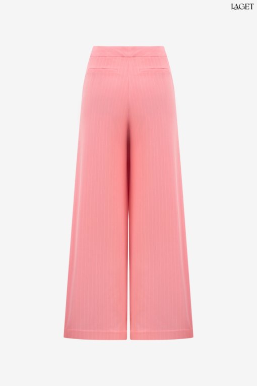 Quần cạp cao dáng suông, xếp ly thân trước, tạo cảm giác eo nhỏ, hông lớn.