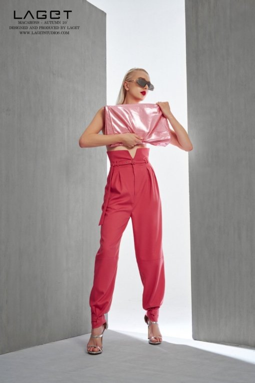 Quần cạp cao có phần đai rời tôn dáng.