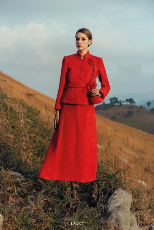 Chất liệu tweed nhập Nhật Bản cao cấp, có co giãn, có độ dày vừa phải, giữ ấm tốt, phù hợp với thời tiết mùa thu đông. có dệt thêm các sợi lấp lánh