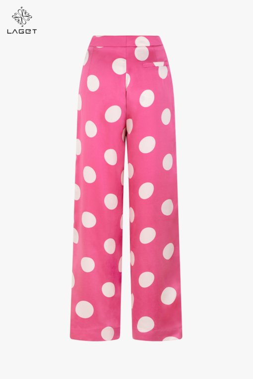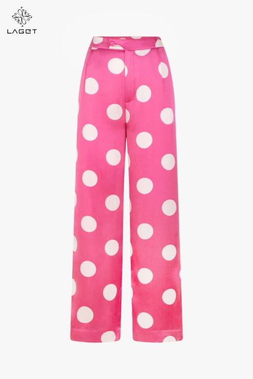 Quần cạp cao dáng suông tạo hiệu ứng đôi chân dài.