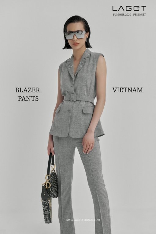 Áo blazer không tay. Chi tiết thêu thủ công ve cổ áo. Phom dáng hiện đại được tinh chỉnh để phù hợp với vóc dáng phụ nữ châu Á.