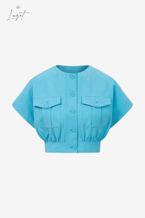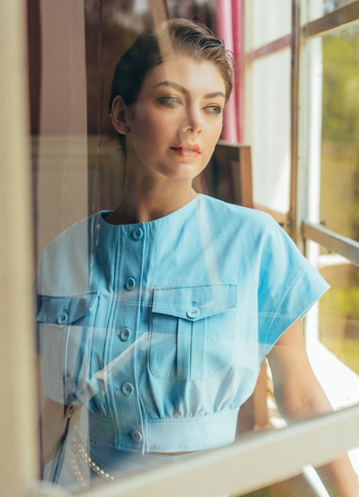 Áo có thiết kế vai chờm giúp người mặc che được bắp tay to, thân suông bo đai eo khéo léo tôn lên vòng eo nhỏ.